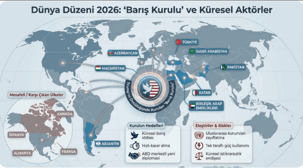 2026 yılının Ocak ayının üçüncü haftası, uluslararası ilişkiler literatüründe “geçiş dönemi” olarak adlandırılan belirsizliğin sona erdiği ve yeni, sert güç dengelerine dayalı bir düzenin kristalize olduğu hafta olarak kayıtlara geçti. İsviçre’nin Davos kasabasında düzenlenen Dünya Ekonomik Forumu (WEF), ABD Başkanı Donald Trump’ın Birleşmiş Milletler sistemine alternatif olarak kurguladığı “Barış Kurulu” (Board of Peace) inisiyatifini ilan etmesiyle, II. Dünya Savaşı sonrası kurulan liberal düzenin fiilen sona erdiğini tescillemiş oldu. Aynı günlerde ABD’nin Dünya Sağlık Örgütü’nden (DSÖ) resmen çekilmesi, küresel sağlık mimarisinde de Washington merkezli dönemin kapandığını gösteriyor.