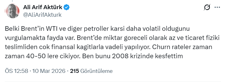 Brent Petrol ve WTI arasında önemli bir ayrıntıyı da bu konuda en bilgili isimlerden biri Ali Arif Aktürk belirtti: