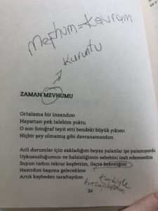 Şiirin adı “Zaman Mefhumu” olmalıydı. Bir de yine sık yaptığımız yanlışlardan biri de “An İtibariyle” şeklinde -e harfiyle yazmak. Oysa doğrusu “An İtibarıyla” yani -a harfiyle bitmelidir. TDK bile bunu “itibarıyla” olarak yazar. Diğerini bulamazsınız.