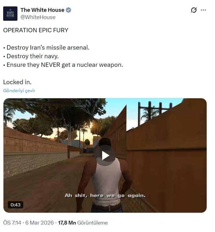 5 Mart 2026’da Beyaz Saray’ın resmî X ve TikTok hesaplarından paylaşılan “hype” videoları, modern diplomasi tarihinde bir ilk olarak kayıtlara geçti.24